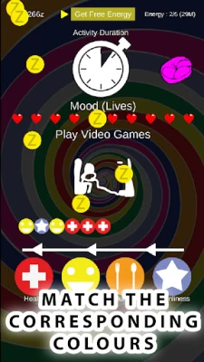 How to Play - use the button below to match with the activity elements above, and match all of the activity element required - if times runs out, it will reduce the mood points - when moods point reaches zero, activity will set to idle - drag cats into their bed if the cats is running around