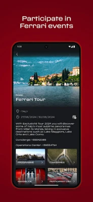 • Discover upcoming Ferrari events and relive past ones with photos and videos
