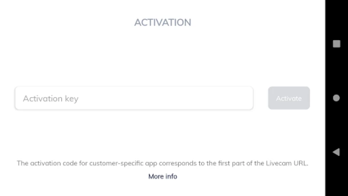 Access directly selected Livecams by entering the activation code represented by the customer name.
