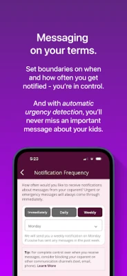 • Communication that works for you: Set boundaries around when and how you receive notifications from your coparent (weekly, daily).