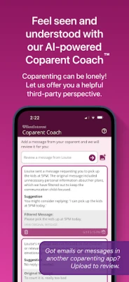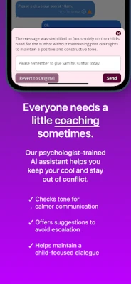 • AI-Powered Communication: Our assistant automatically filters and neutralizes emotionally charged messages from your coparent, regardless of the type of communicator they are.