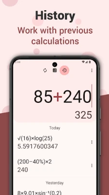 🕒 History: Easily track and review previous calculations with our handy history feature, ensuring you never lose important work.