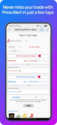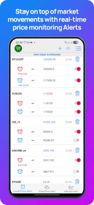 * Real-time Alerts: Get instant notifications for price movements with Price Alert feature and technical signal on over 100 forex pairs & over 2000 crypto pairs include Currencies, Indices, Commodities, Energies, Cryptocurrencies, Stock, Synthetic indices from world's largest exchanges: Exness,Icmarket,Deriv,Binance...