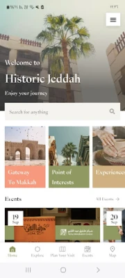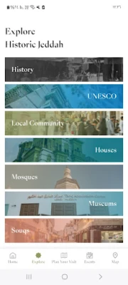 من خلال هذا التطبيق، يمكنك استكشاف قلب جدة القديمة، بما يشمله من أحياء تاريخية، أسواق شعبية، بيوت تراثية، مساجد، متاحف، وفعاليات ثقافية.