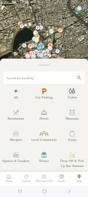 - An interactive map showing major landmarks like old homes, mosques, -museums, and popular souks.