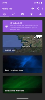 - Free push notifications and alerts when auroral activity is expected to be high.