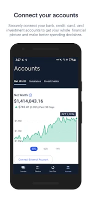 • Link all your accounts, such as banking, credit cards, retirement, investment and loans into one centralized location