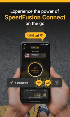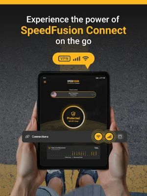 How it works: SpeedFusion Connect combines Cellular, Wi-Fi, and other internet connections simultaneously. If one link drops or slows down, the others pick up the slack—instantly. That means fewer interruptions, smoother performance, and less data loss.