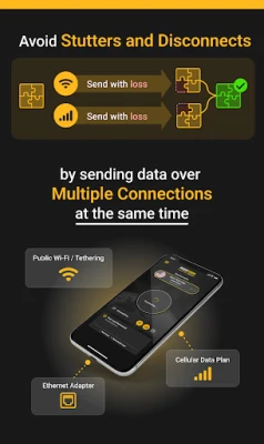Seamless connectivity in just one tap: 1. Make sure you have at least two active internet connections (e.g. Cellular, Wi-Fi, Tethering, or Ethernet Adapter) 2. Tap to connect—and enjoy a smoother, more resilient online experience